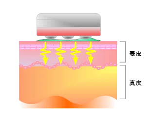 微弱な電気パルスによって皮膚に一時的にごく小さな穴をあけ、美容成分を肌の深部まで浸透させる施術です。イオン導入では難しい高分子の成分の導入が可能です。